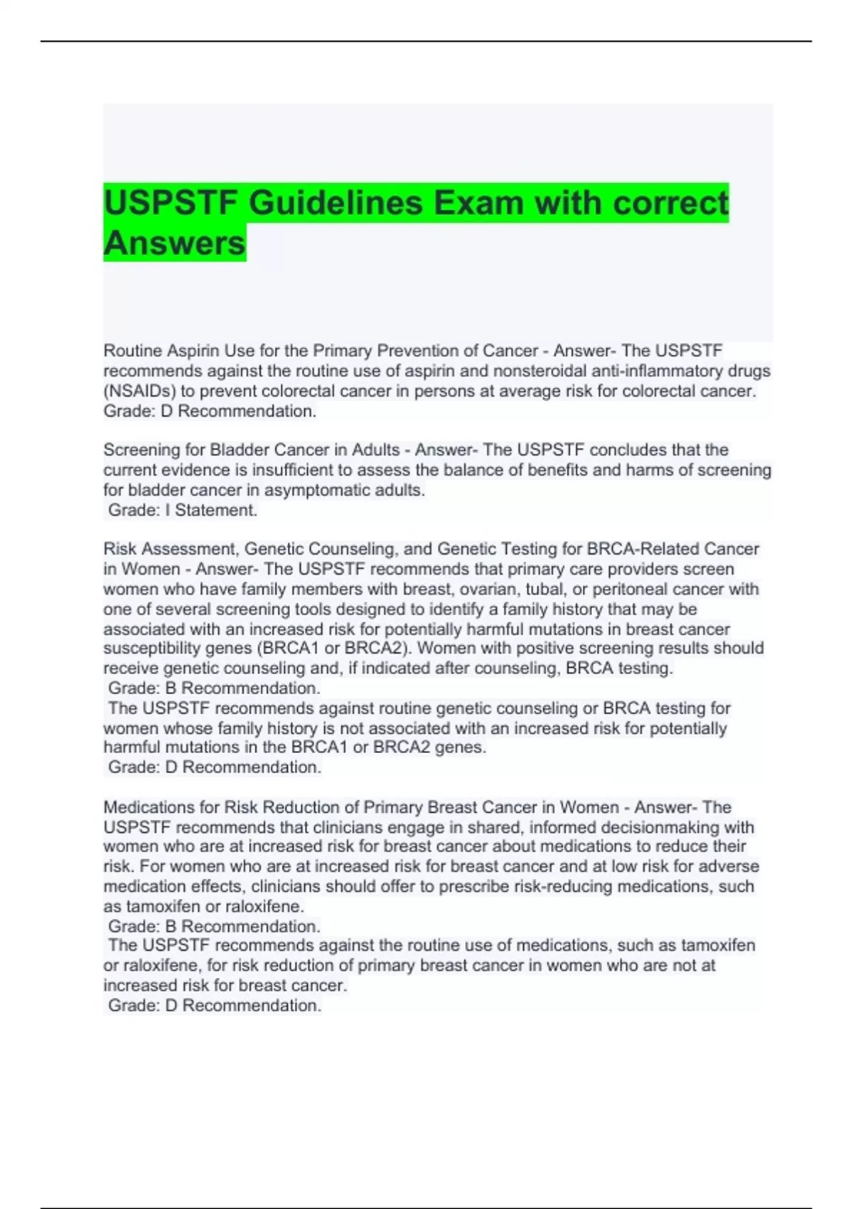 USPSTF Guidelines Exam with correct Answers 2024