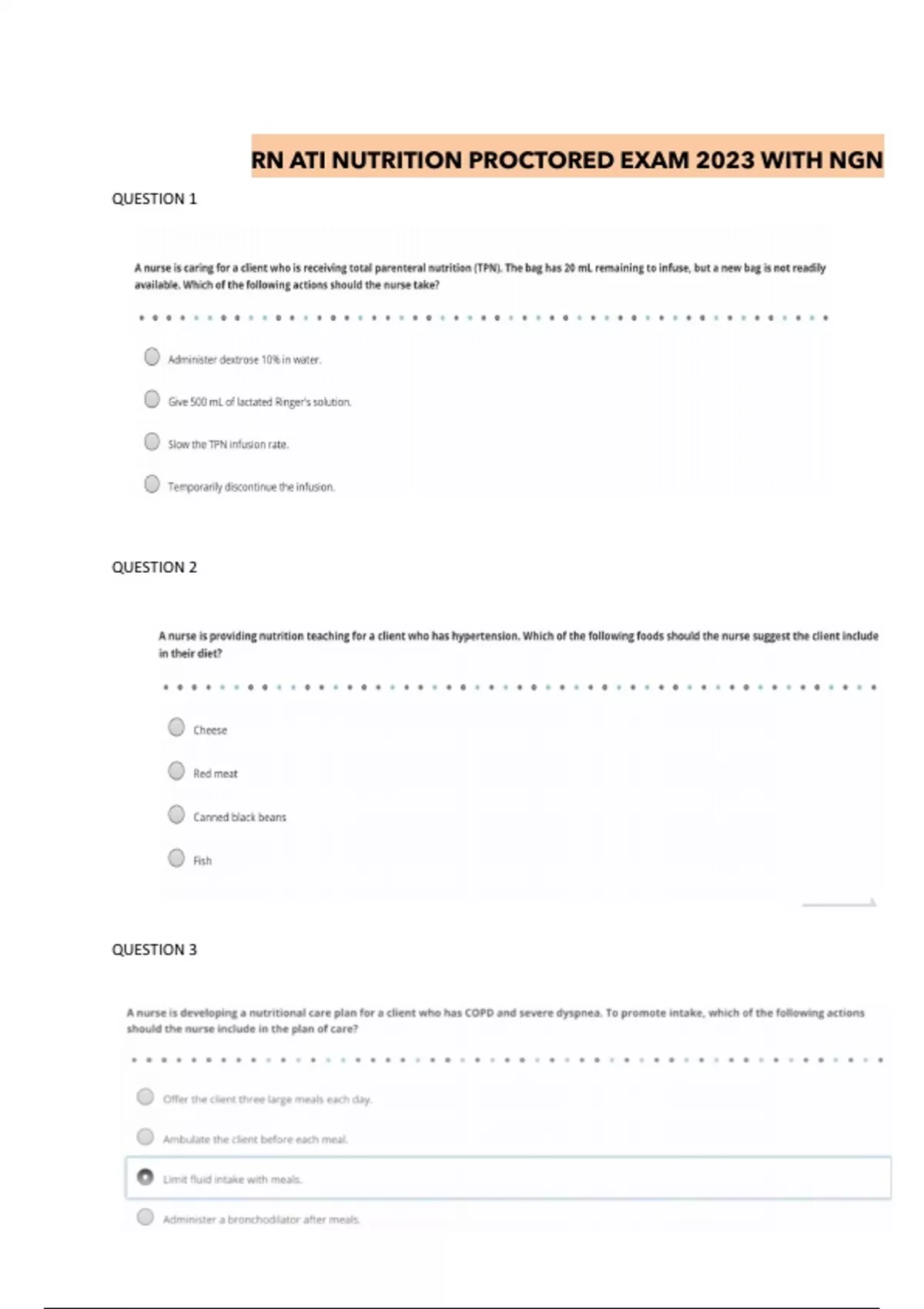 NGN ATI Nutrition Proctored Exam (Latest-2023/2024)