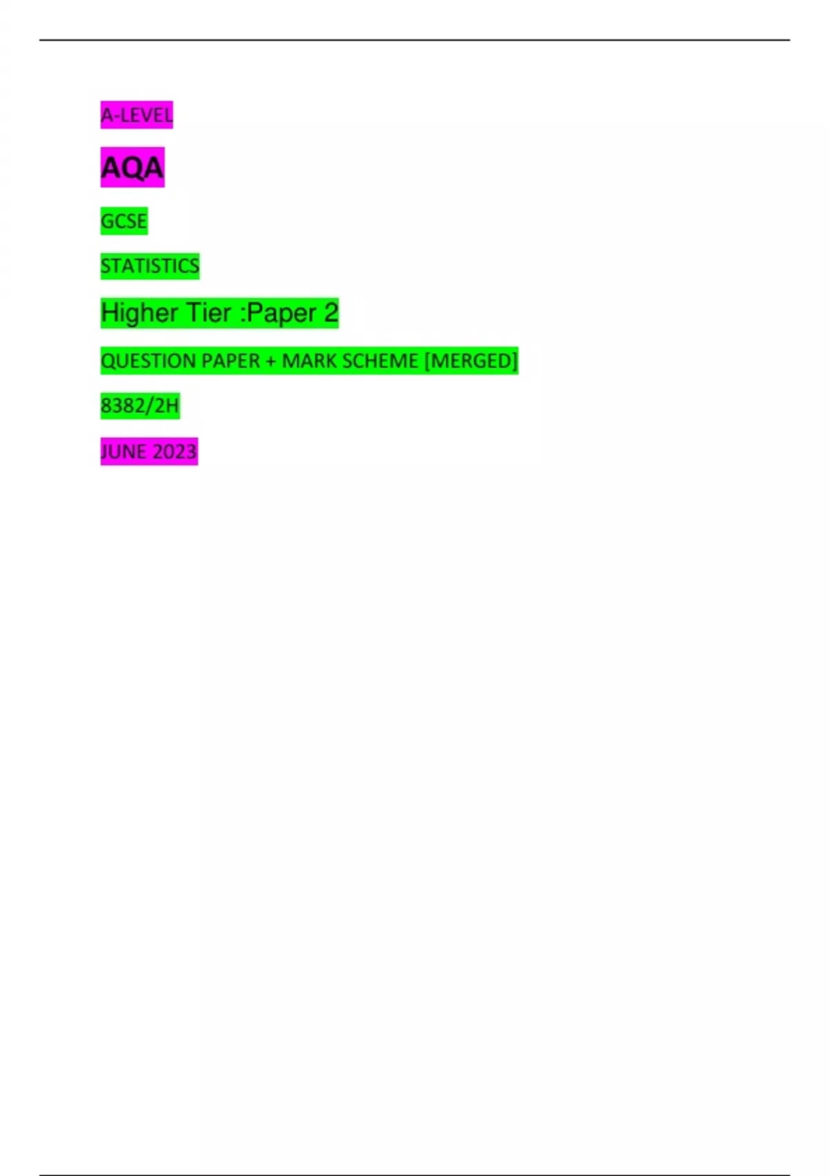 A-LEVEL AQA GCSE STATISTICS Higher Tier :Paper 2 QUESTION PAPER + MARK SCHEME [MERGED] 8382/2H JUNE 2023