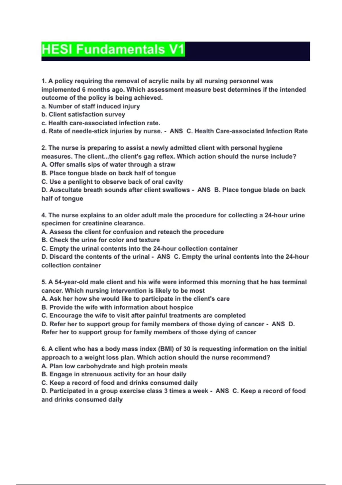 - HESI Fundamentals V1