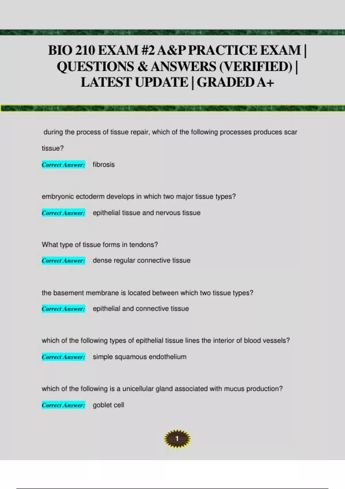 BIO 210 EXAM #2 A&P PRACTICE EXAM | QUESTIONS & ANSWERS (VERIFIED) | LATEST UPDATE | GRADED A+