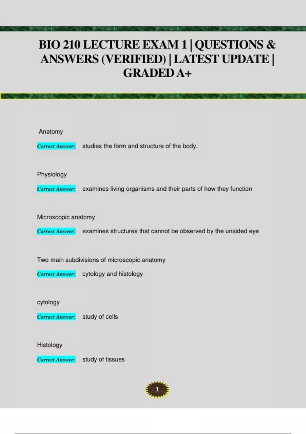 BIO 210 LECTURE EXAM 1 | QUESTIONS & ANSWERS (VERIFIED) | LATEST UPDATE | GRADED A+
