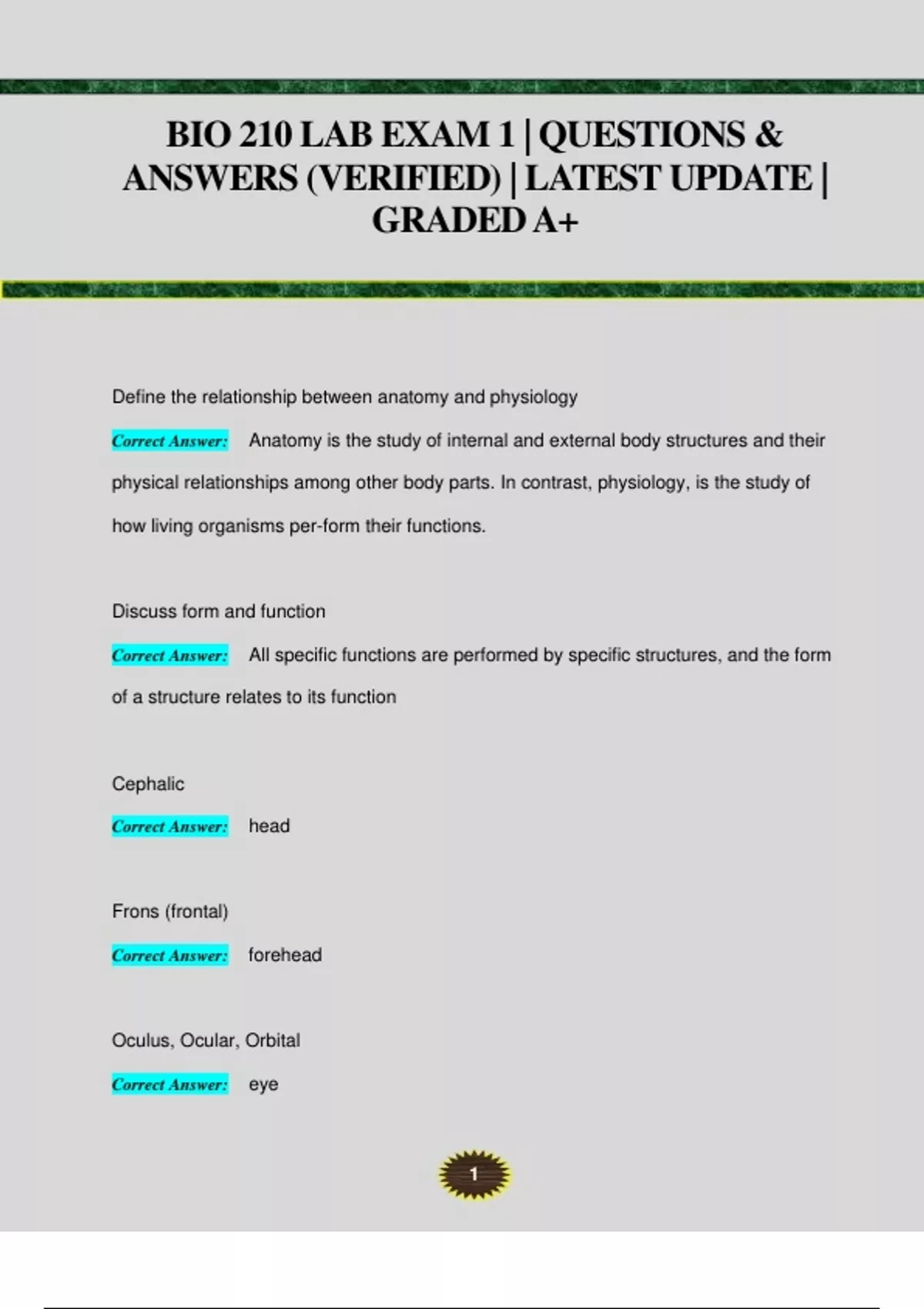 BIO 210 LAB EXAM 1 | QUESTIONS & ANSWERS (VERIFIED) | LATEST UPDATE | GRADED A+