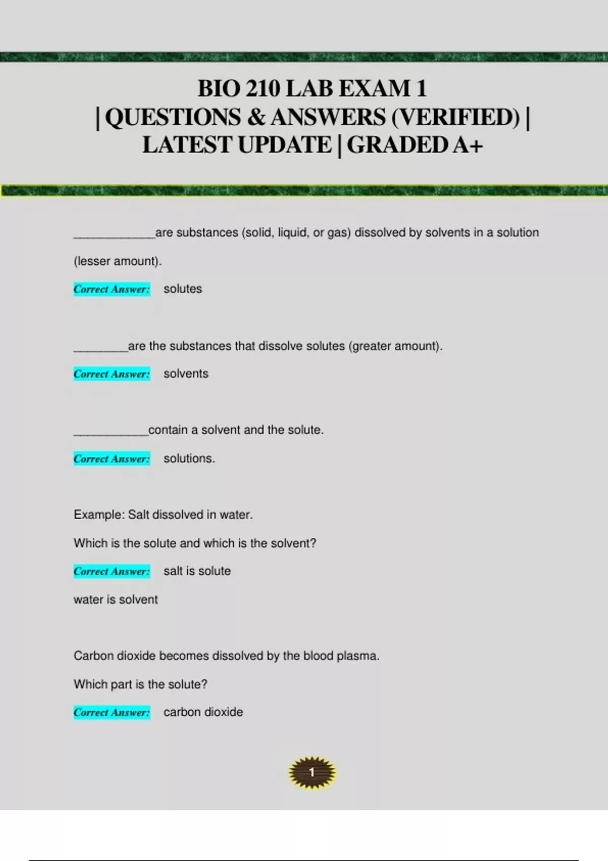 BIO 210 LAB EXAM 1 | QUESTIONS & ANSWERS (VERIFIED) | LATEST UPDATE | GRADED A+