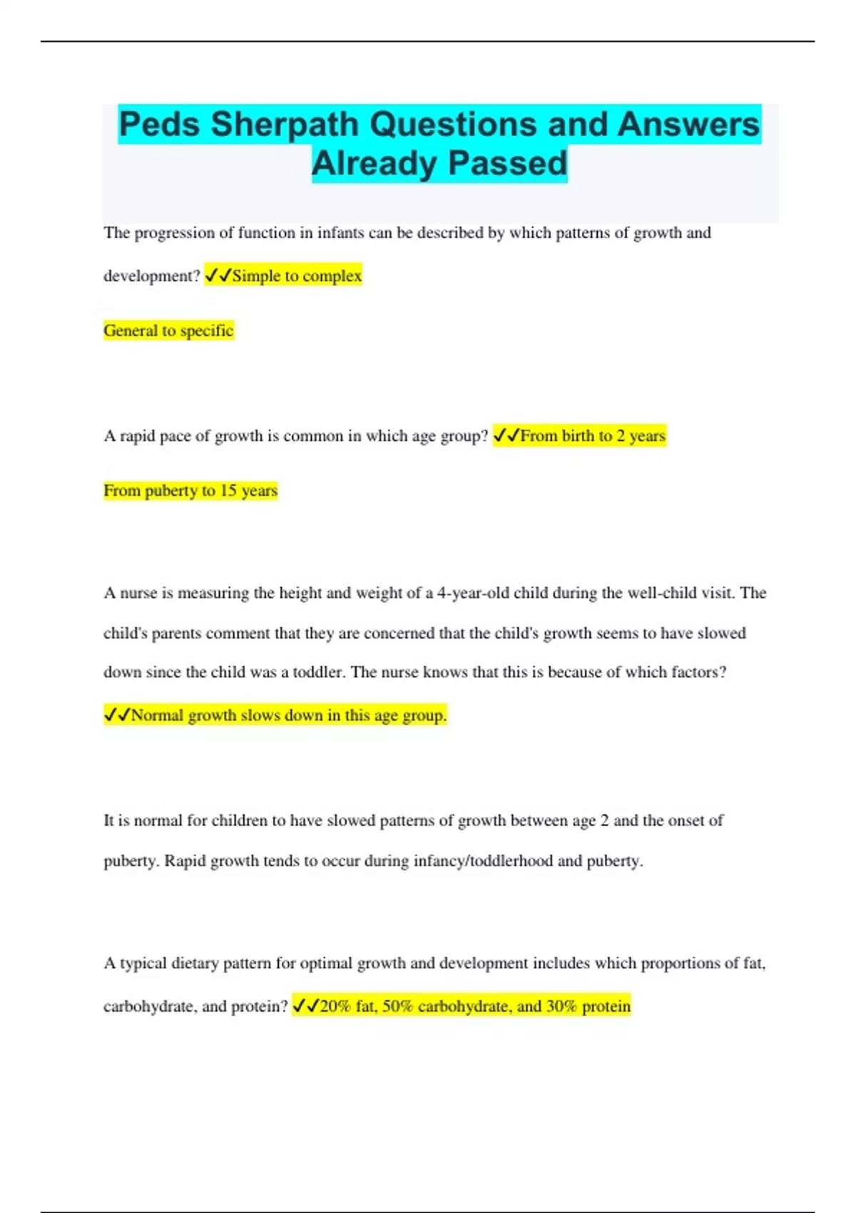 peds sherpath questions and answers already passe