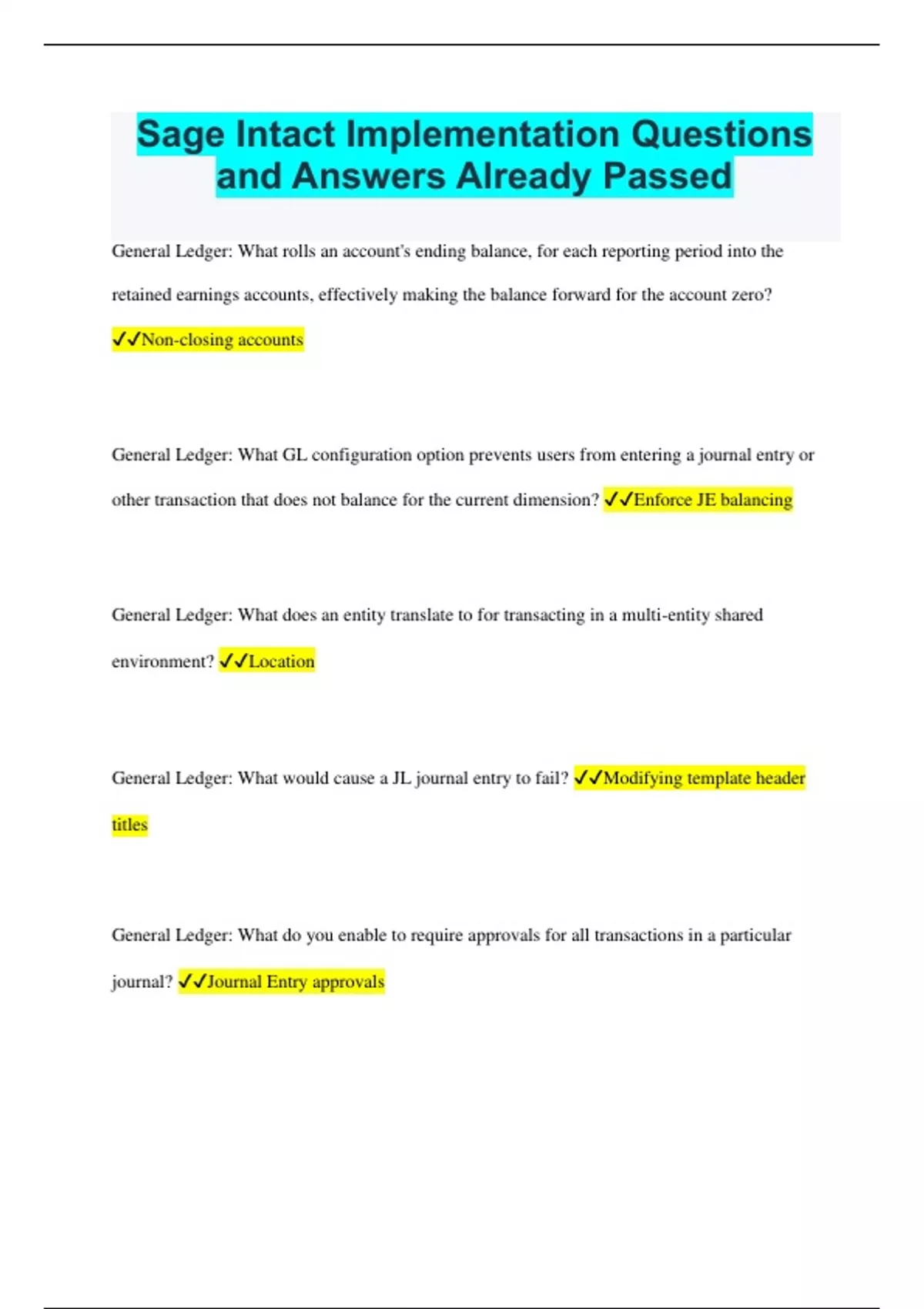 Sage Intact Implementation Questions and Answers Already Passed