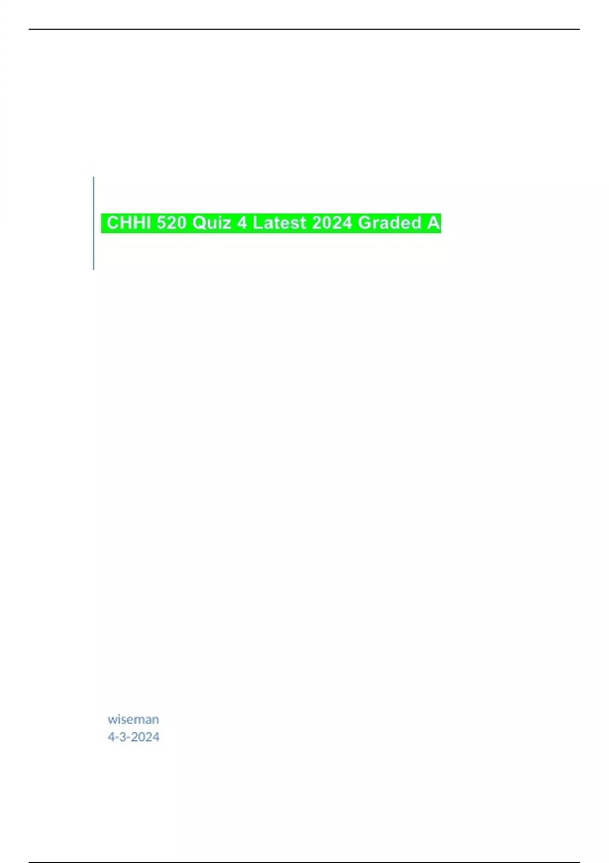 chhi 520 quiz 4 latest 2024 graded a