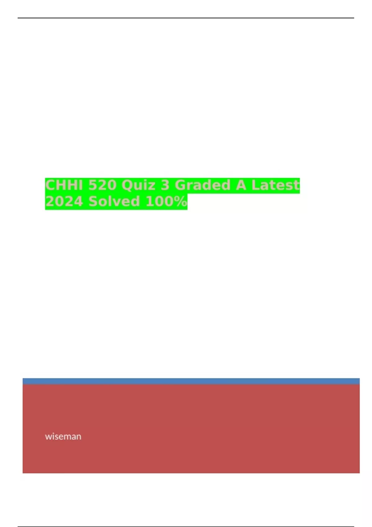 CHHI 520 Quiz 3 Graded A Latest 2024 Solved 100%