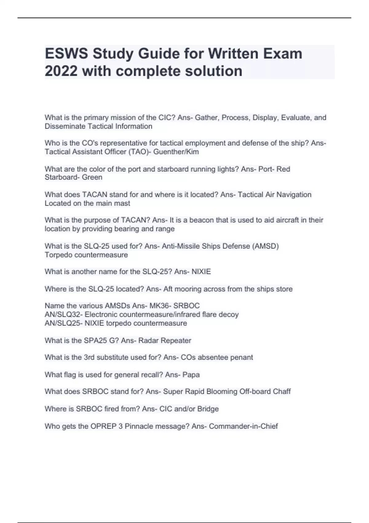 ESWS STUDY GUIDE FOR WRITTEN EXAM 2024 WITH COMPLETE SOLUTION