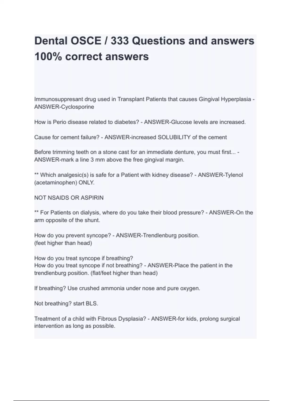 Dental OSCE / 333 Questions and answers 100% correct answers