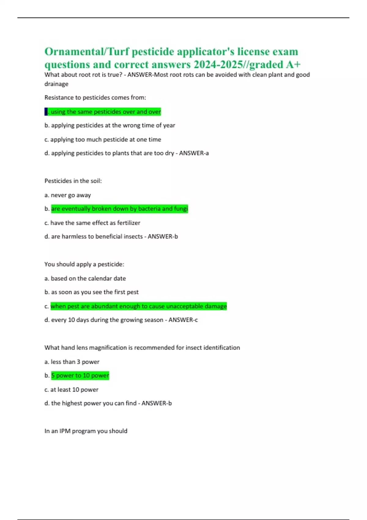 Ornamental/Turf pesticide applicator's license exam questions and correct answers //graded A+ What about root rot is true? Ornamental/Turf pesticide applicator's license exam questions and correct answers //graded A+ What about root rot is true? Ornamental/Turf pesticide applicator's license exam questions and correct answers //graded A+ What about root rot is true? Ornamental/Turf pesticide applicator's license exam questions and correct answers //graded A+ What about root rot is true? Ornamental/Turf pesticide applicator's license exam questions and correct answers //graded A+ What about root rot is true? Ornamental/Turf pesticide applicator's license exam questions and correct answers //graded A+ What about root rot is true?