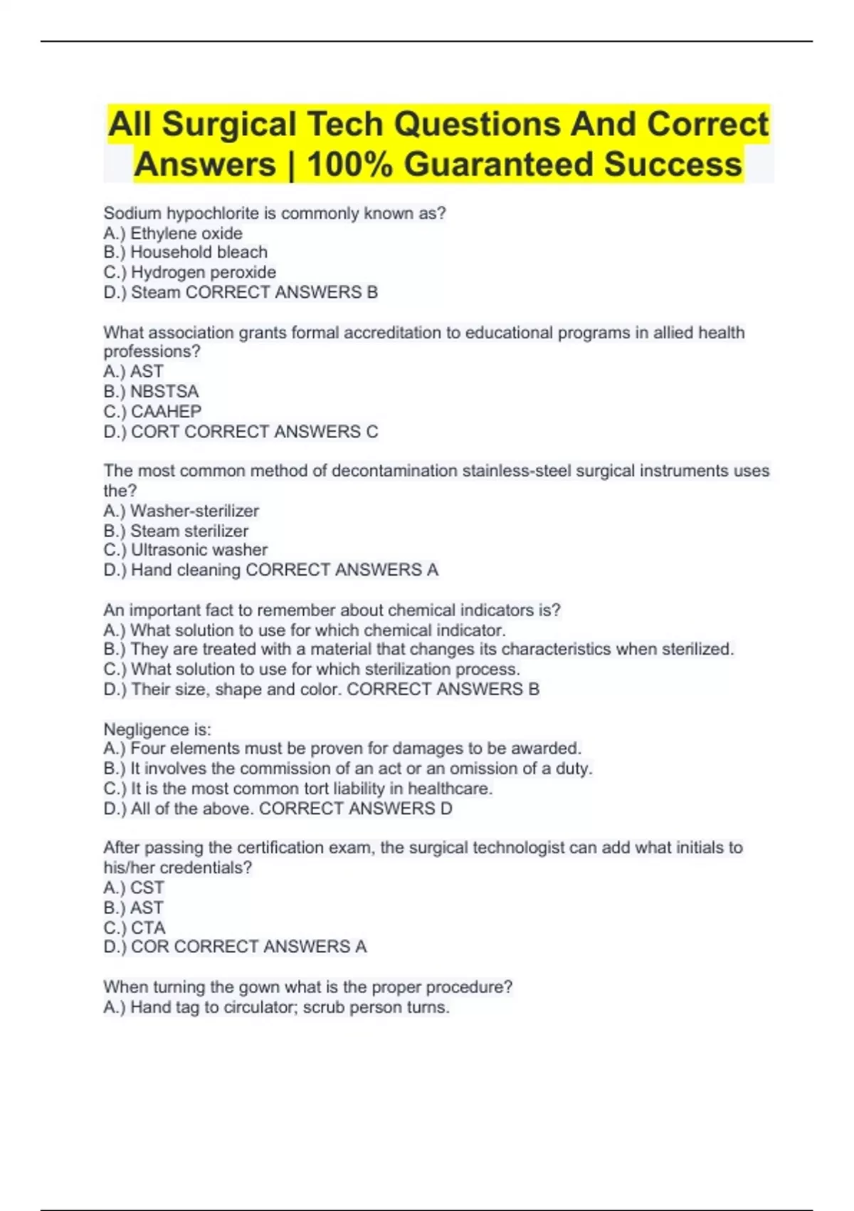All Surgical Tech Questions And Correct Answers | 100% Guaranteed Success