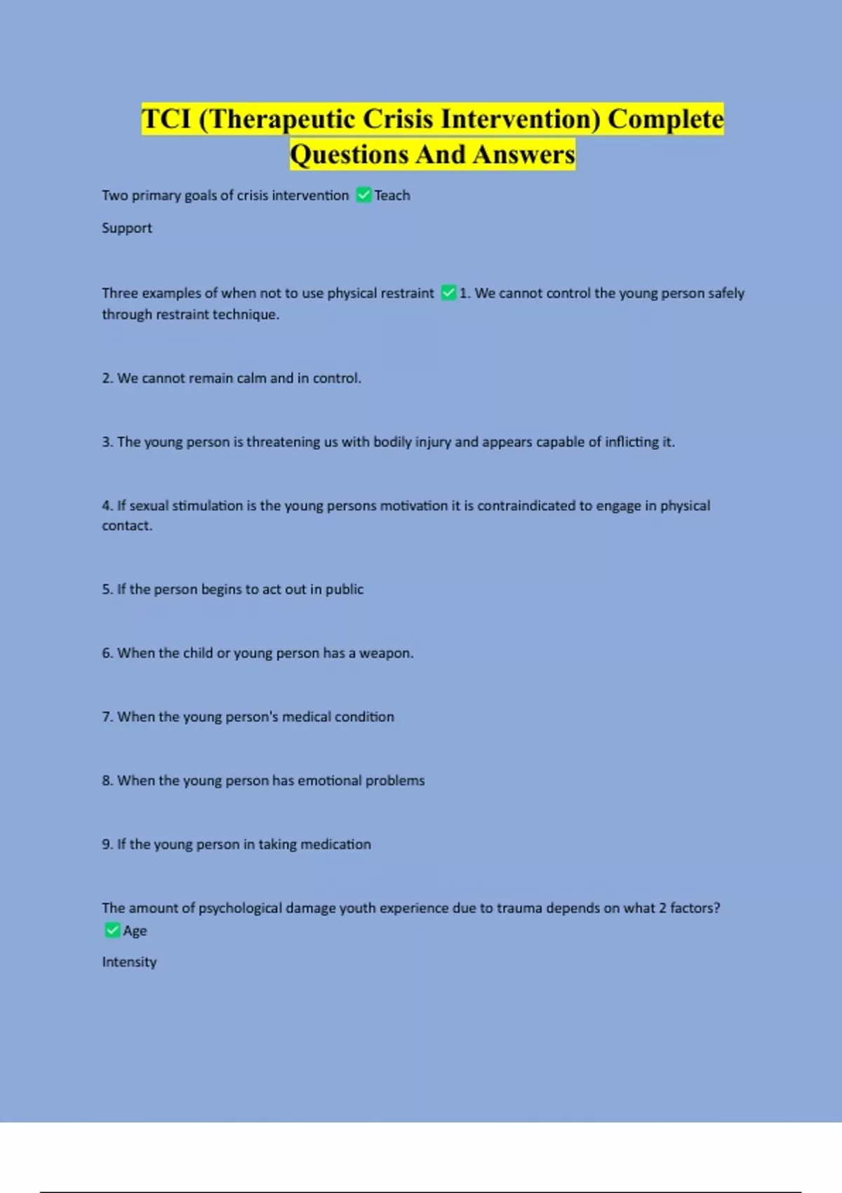 TCI (Therapeutic Crisis Intervention) Complete Questions And Answers TCI (Therapeutic Crisis Intervention) Complete Questions And Answers
