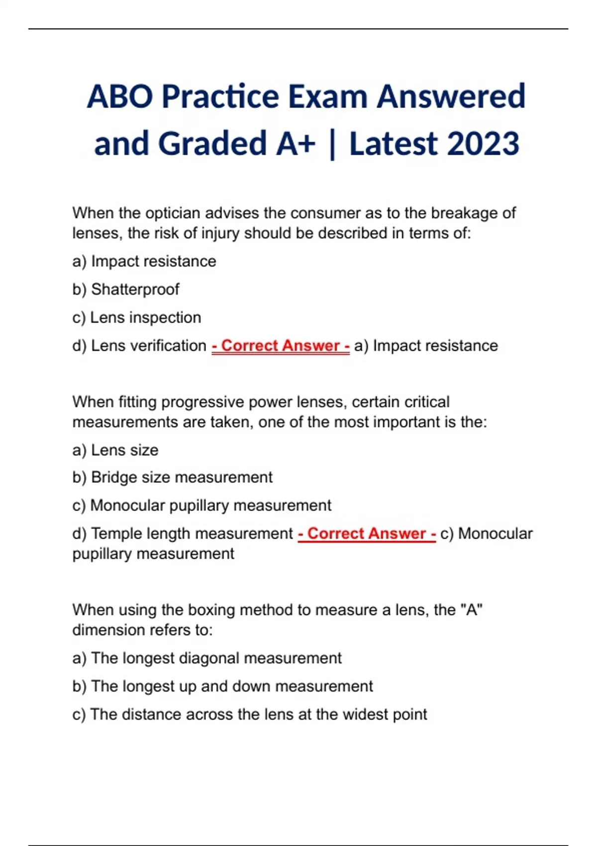 ABO Practice Exam Answered and Graded A+ | Latest 2023 ABO Practice Exam Answered and Graded A+ | Latest 2023 ABO Practice Exam Answered and Graded A+ | Latest 2023
