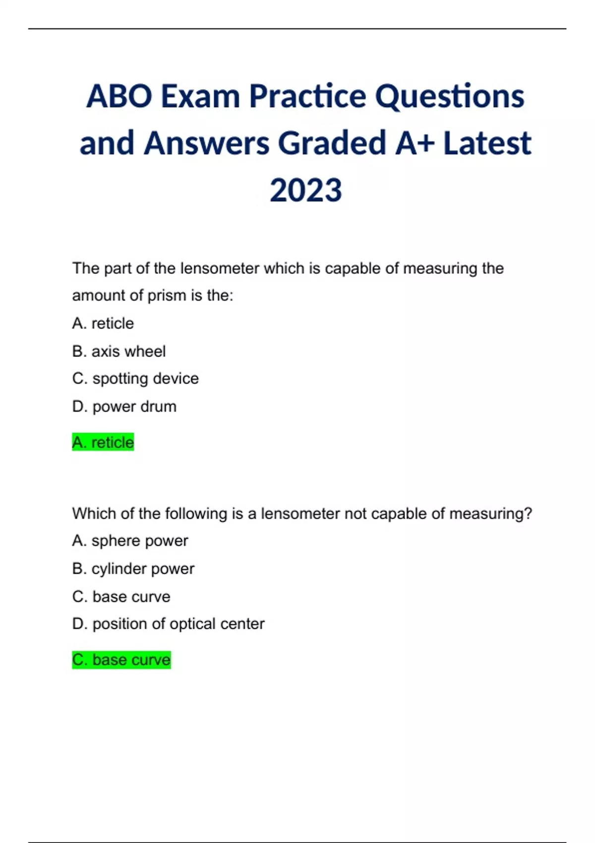 ABO Exam Practice Questions and Answers Graded A+ Latest 2023