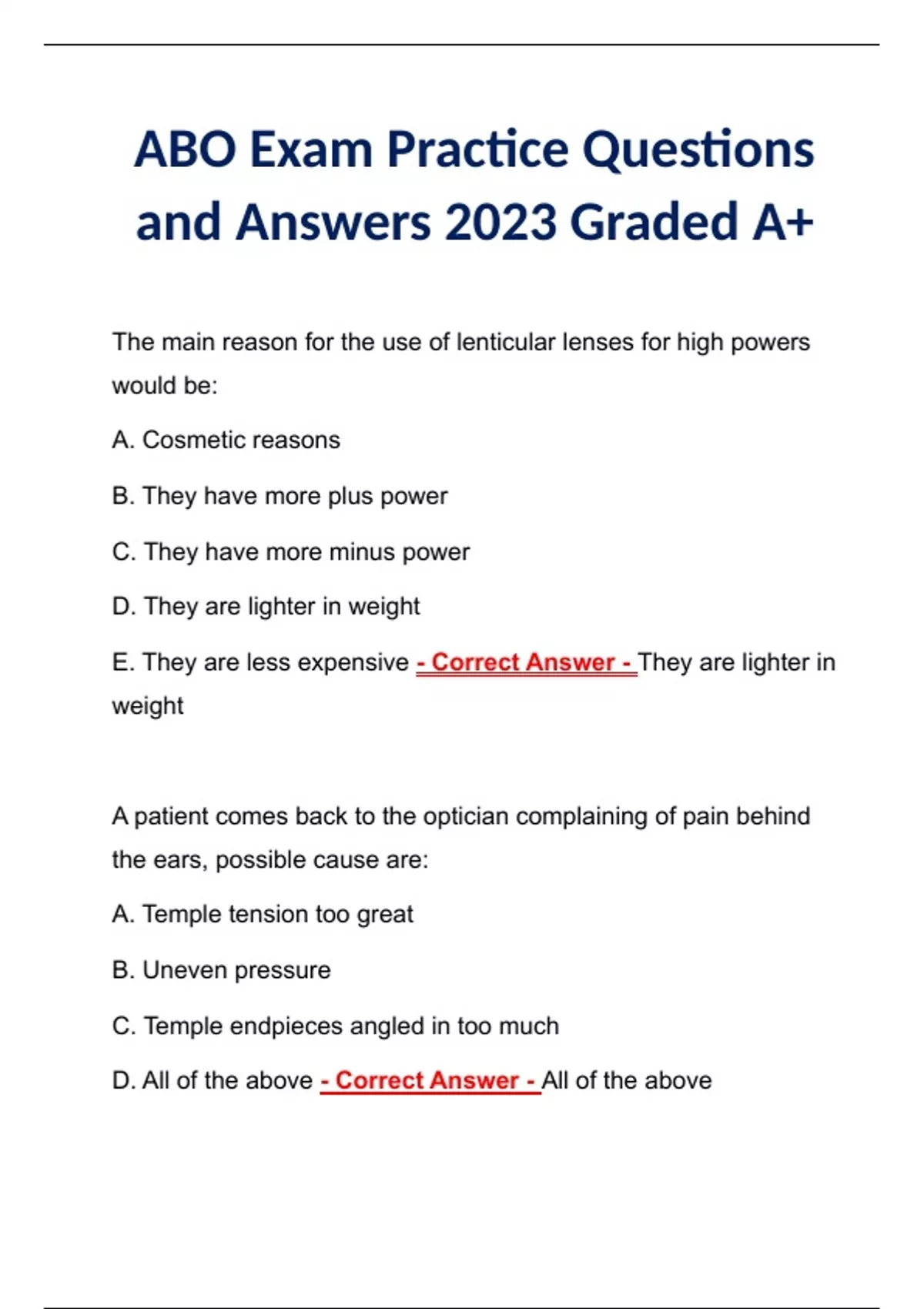 ABO Exam Practice Questions and Answers 2023 Graded A+