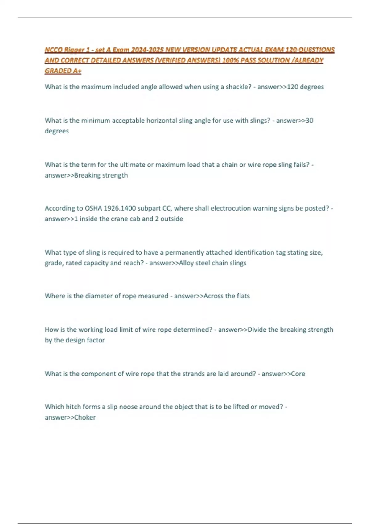 NCCO Rigger 1 - set A Exam NEW VERSION UPDATE ACTUAL EXAM 120 QUESTIONS AND CORRECT DETAILED ANSWERS (VERIFIED ANSWERS) 100% PASS SOLUTION /ALREADY GRADED A+