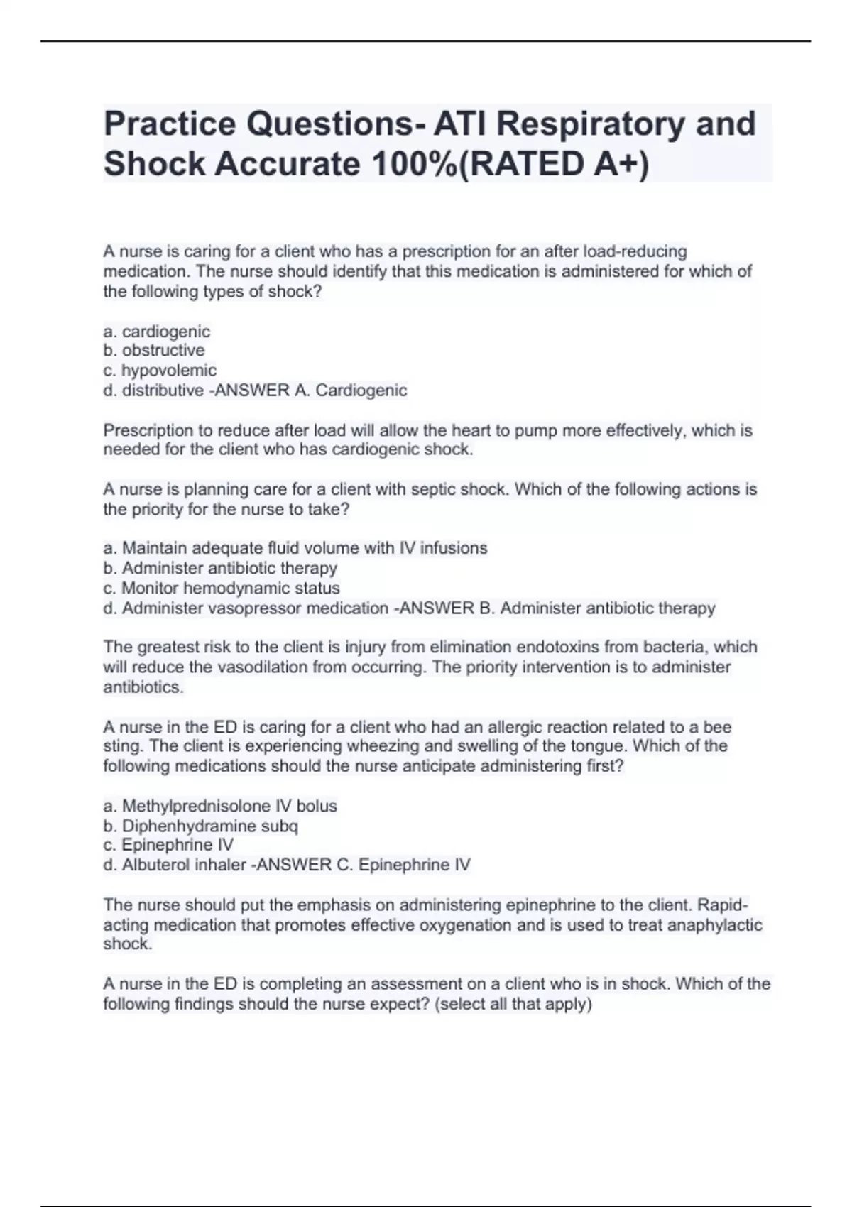 Practice Questions- ATI Respiratory and Shock Accurate 100%(RATED A+)Practice Questions- ATI Respiratory and Shock Accurate 100%(RATED A+)Practice Questions- ATI Respiratory and Shock Accurate 100%(RATED A+)Practice Questions- ATI Respiratory and Shock Accurate 100%(RATED A+)Practice Questions- ATI Respiratory and Shock Accurate 100%(RATED A+)Practice Questions- ATI Respiratory and Shock Accurate 100%(RATED A+)Practice Questions- ATI Respiratory and Shock Accurate 100%(RATED A+)Practice Questions- ATI Respiratory and Shock Accurate 100%(RATED A+)Practice Questions- ATI Respiratory and Shock Accurate 100%(RATED A+)
