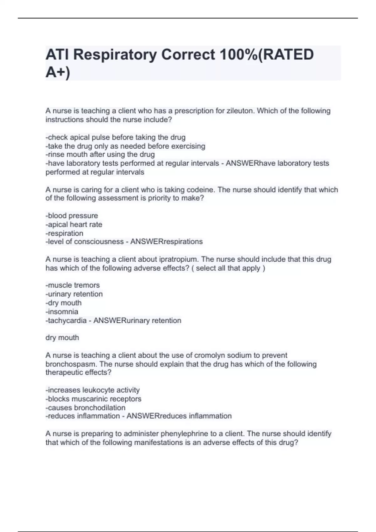 ati respiratory correct stuvia