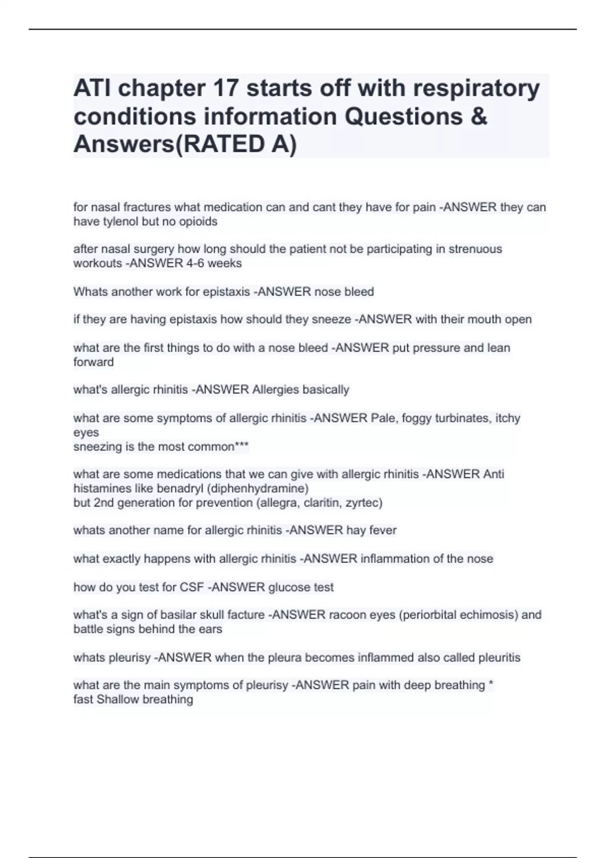ATI chapter 17 starts off with respiratory conditions information Questions & Answers(RATED A)