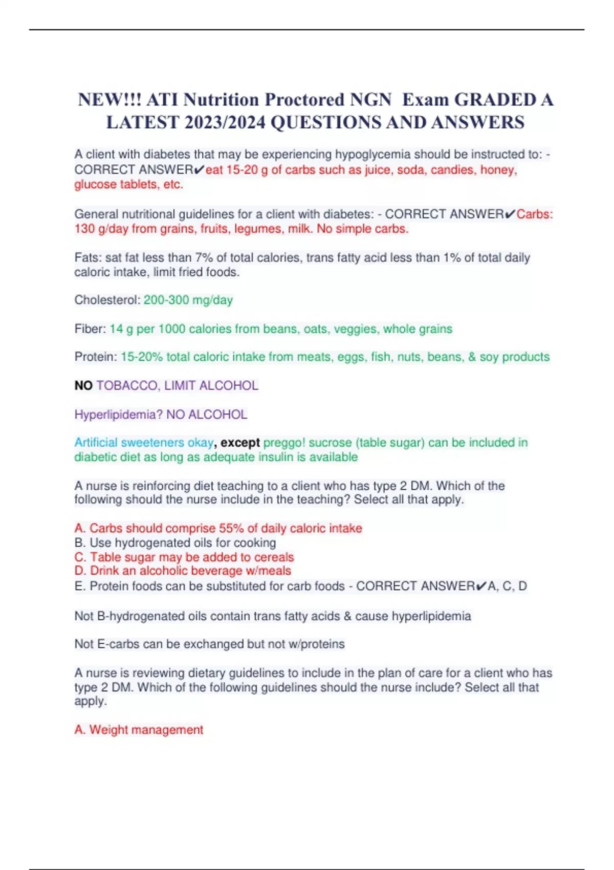 NEW!!! ATI Nutrition Proctored NGN Exam GRADED A LATEST 2023/2024 QUESTIONS AND ANSWERS