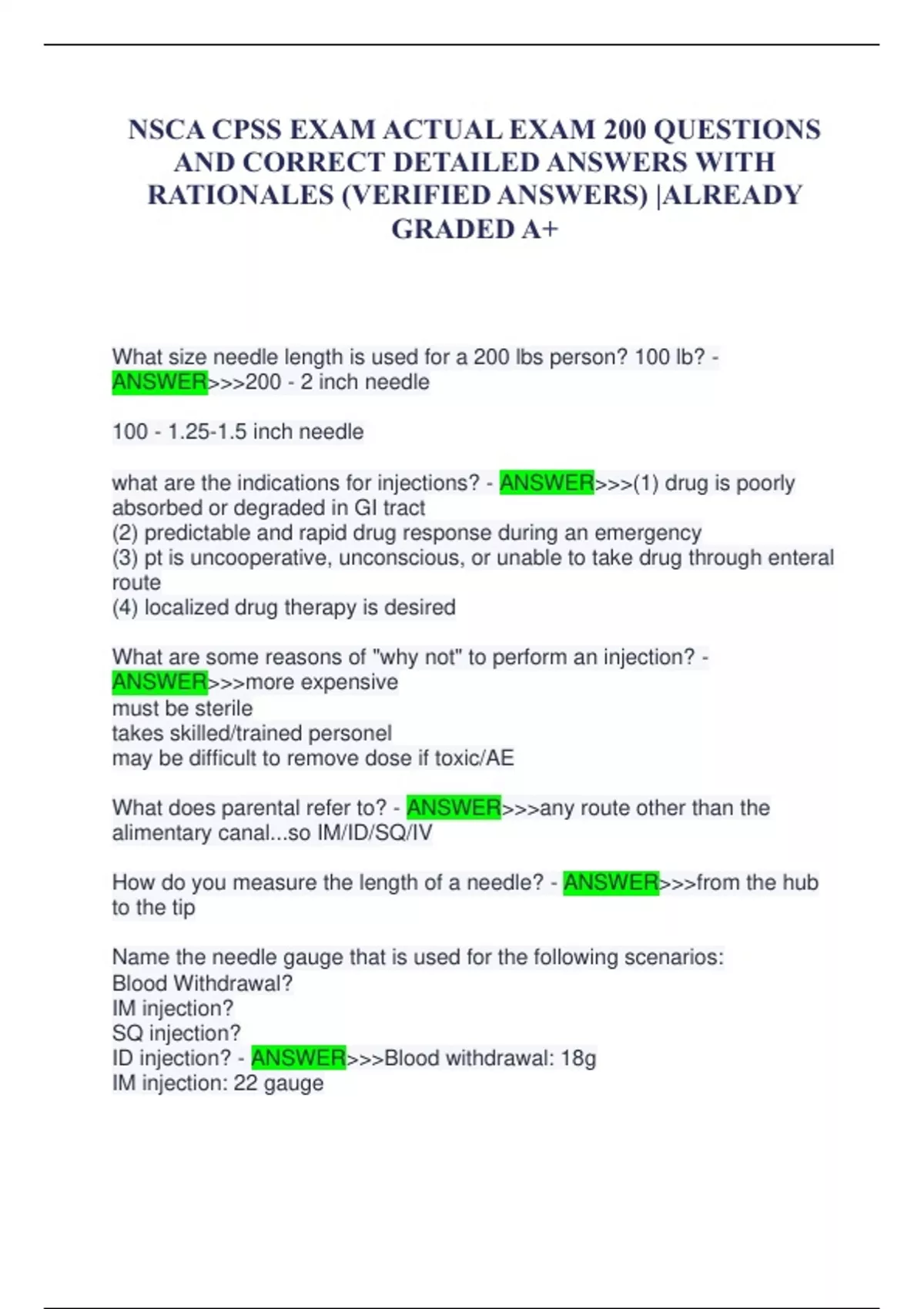 NSCA CPSS EXAM ACTUAL EXAM 200 QUESTIONS AND CORRECT DETAILED ANSWERS WITH RATIONALES (VERIFIED ANSWERS) |ALREADY GRADED A+