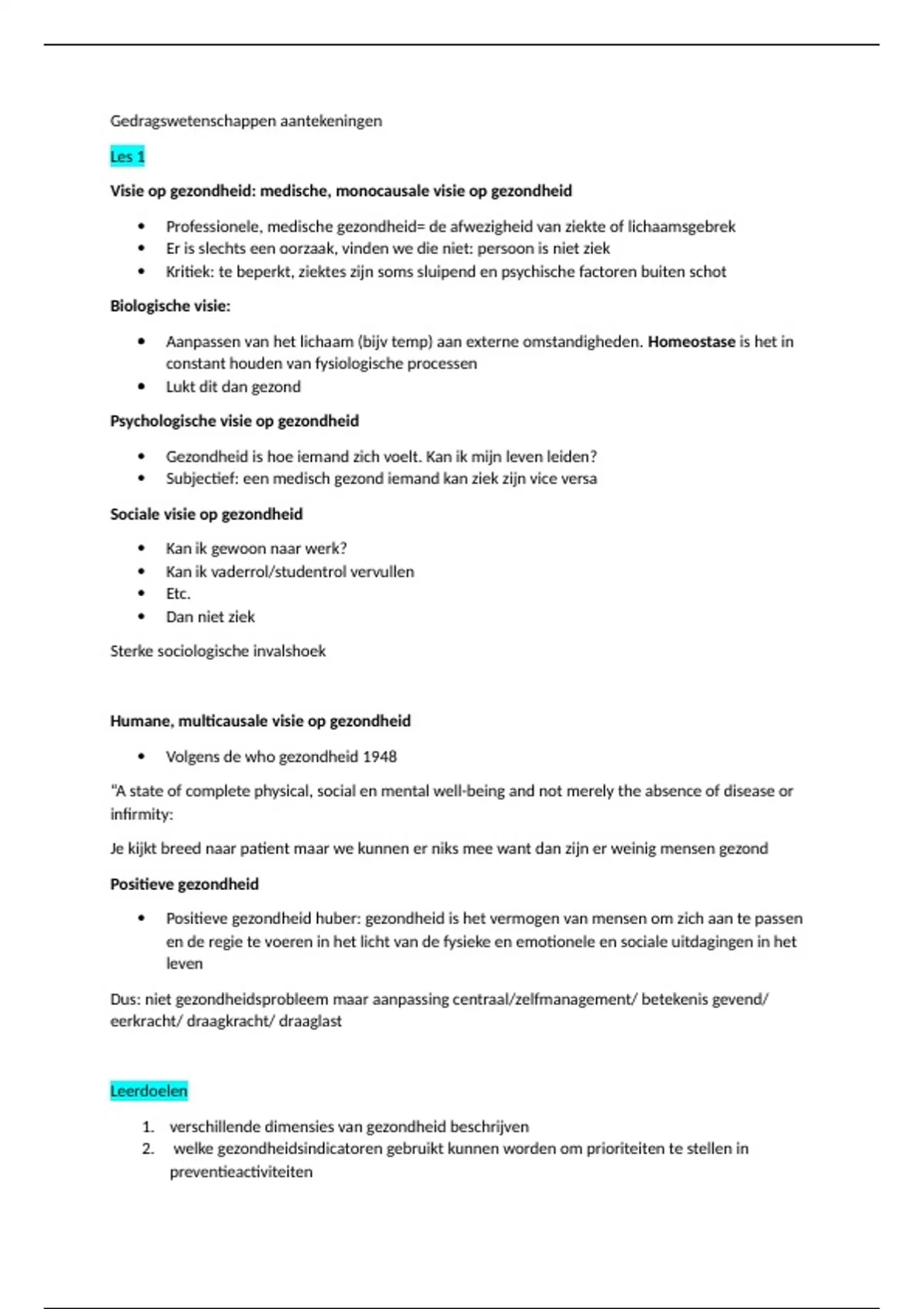 1. verschillende dimensies van gezondheid beschrijven