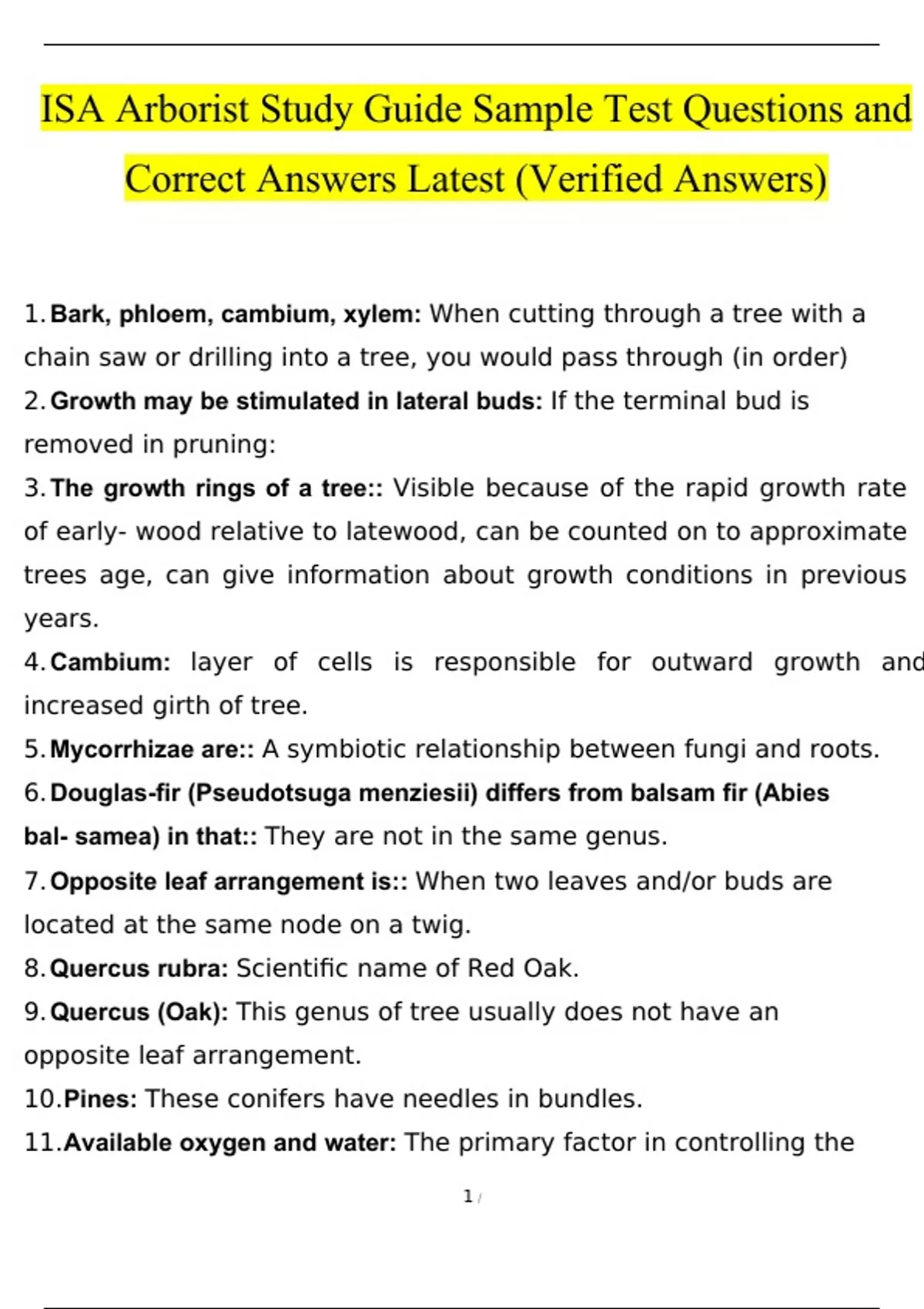 ISA Arborist Study Guide Sample Test Questions and Answers Latest (Verified Answers)