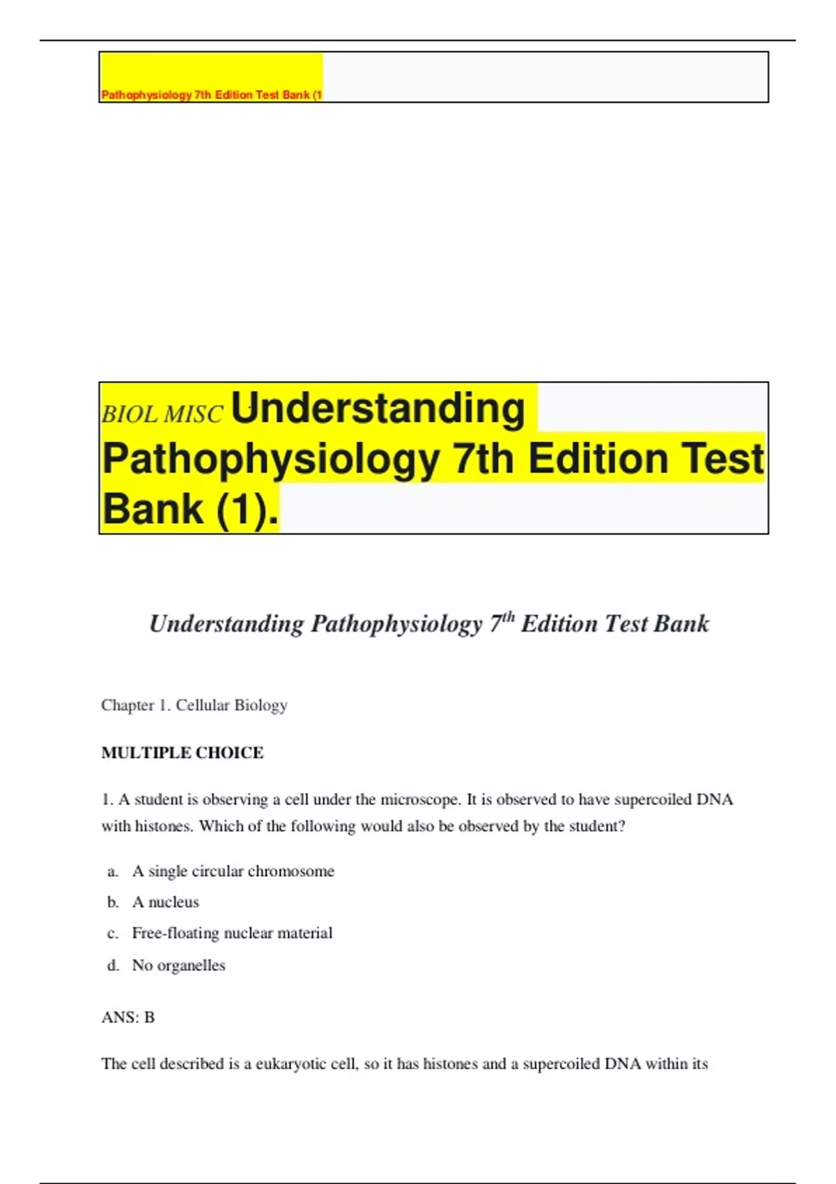 Test Bank For Understanding Pathophysiology 7th Edition