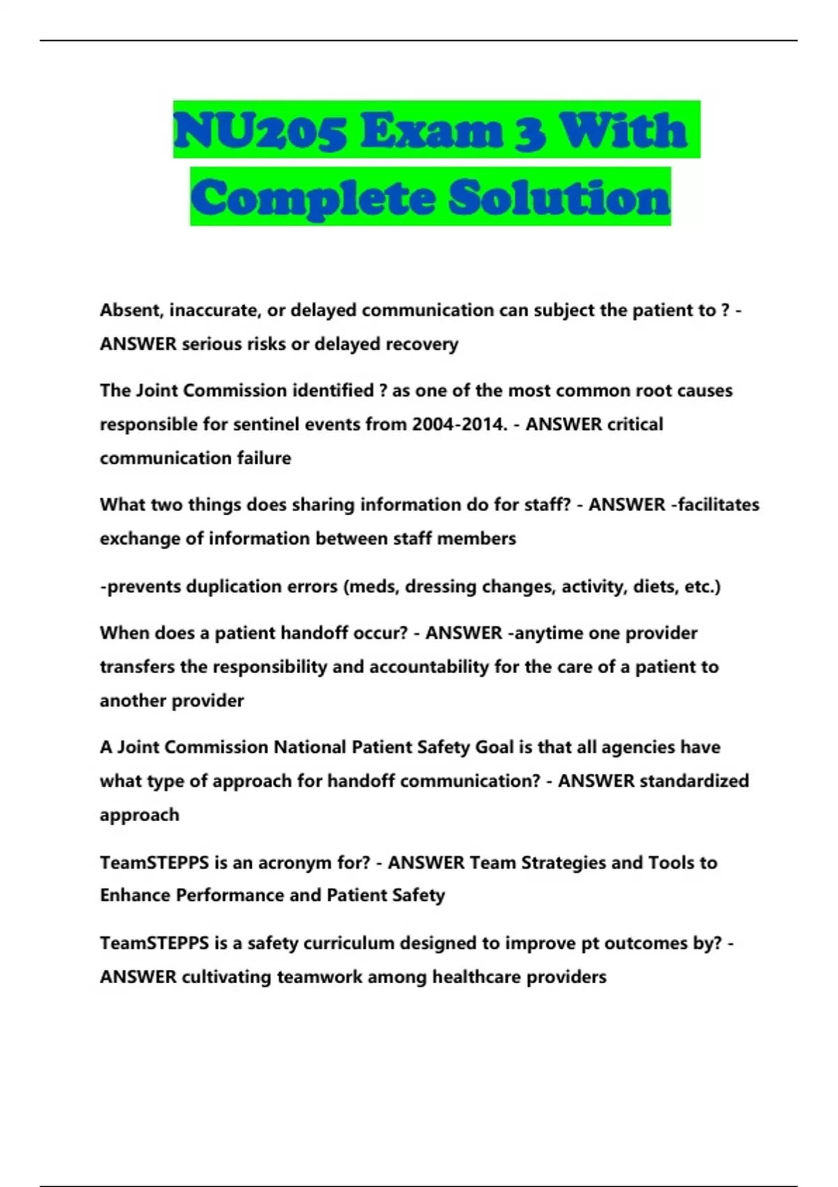 NU205 Exam 3 With Complete Solution...