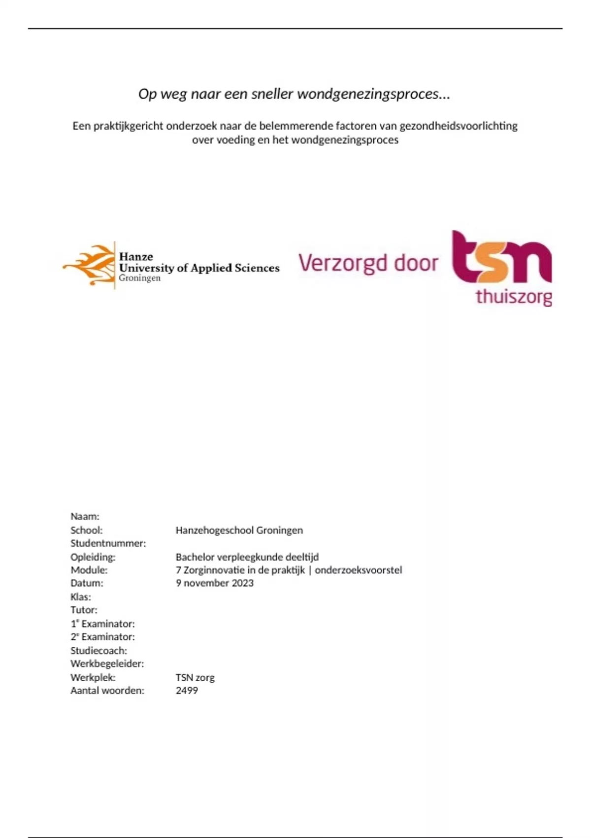 Module: 7 Zorginnovatie in de praktijk | onderzoeksvoorstel