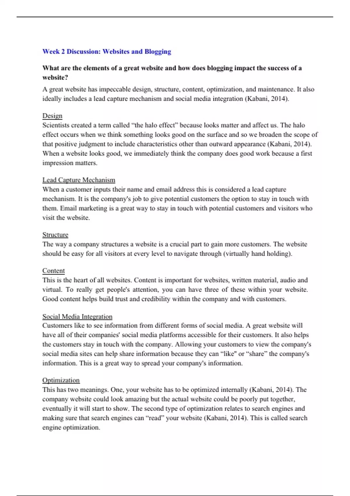MKTG308 Week 2 Discussion; Websites and Blogging