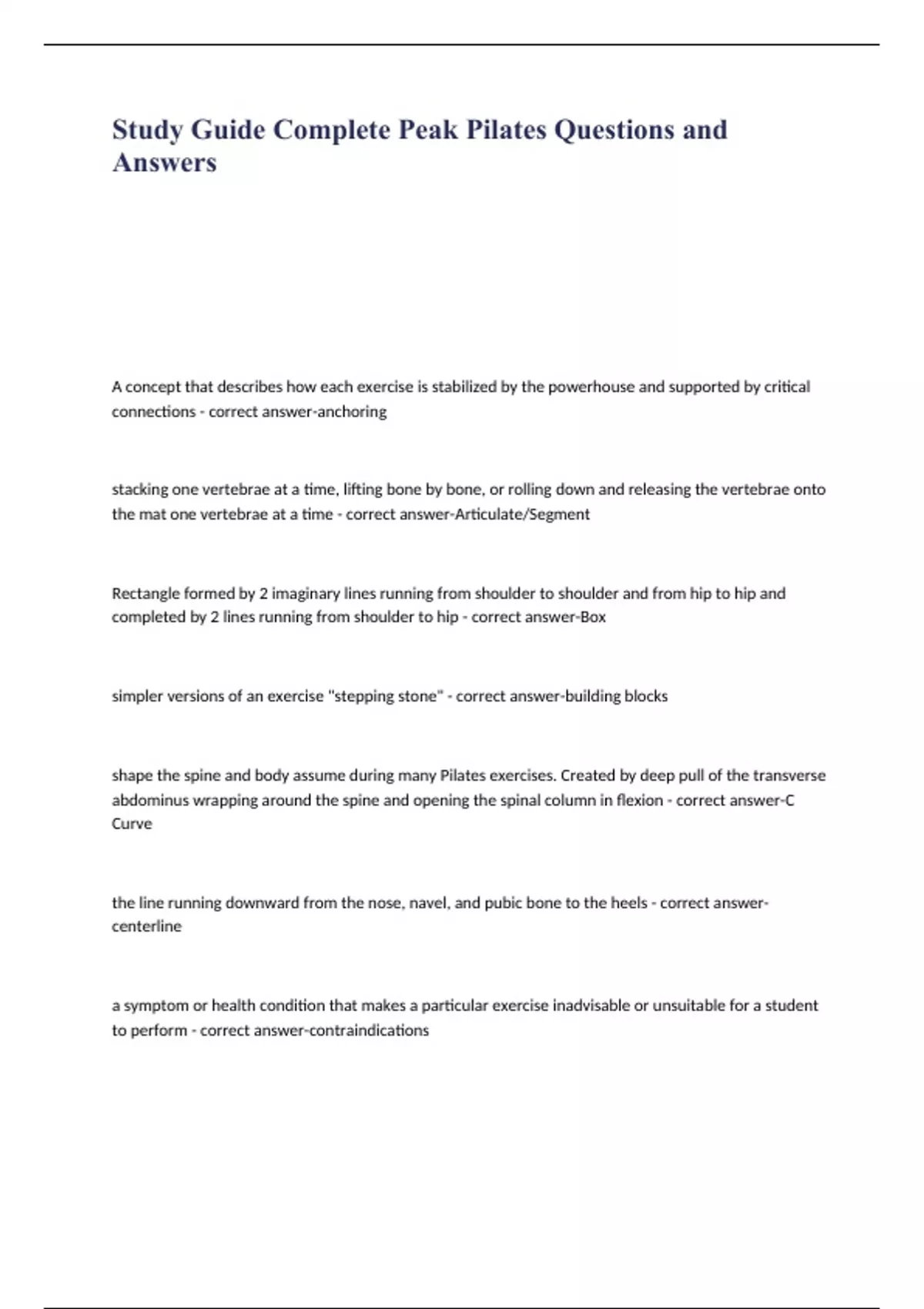 Study Guide Complete Peak Pilates Questions and Answers