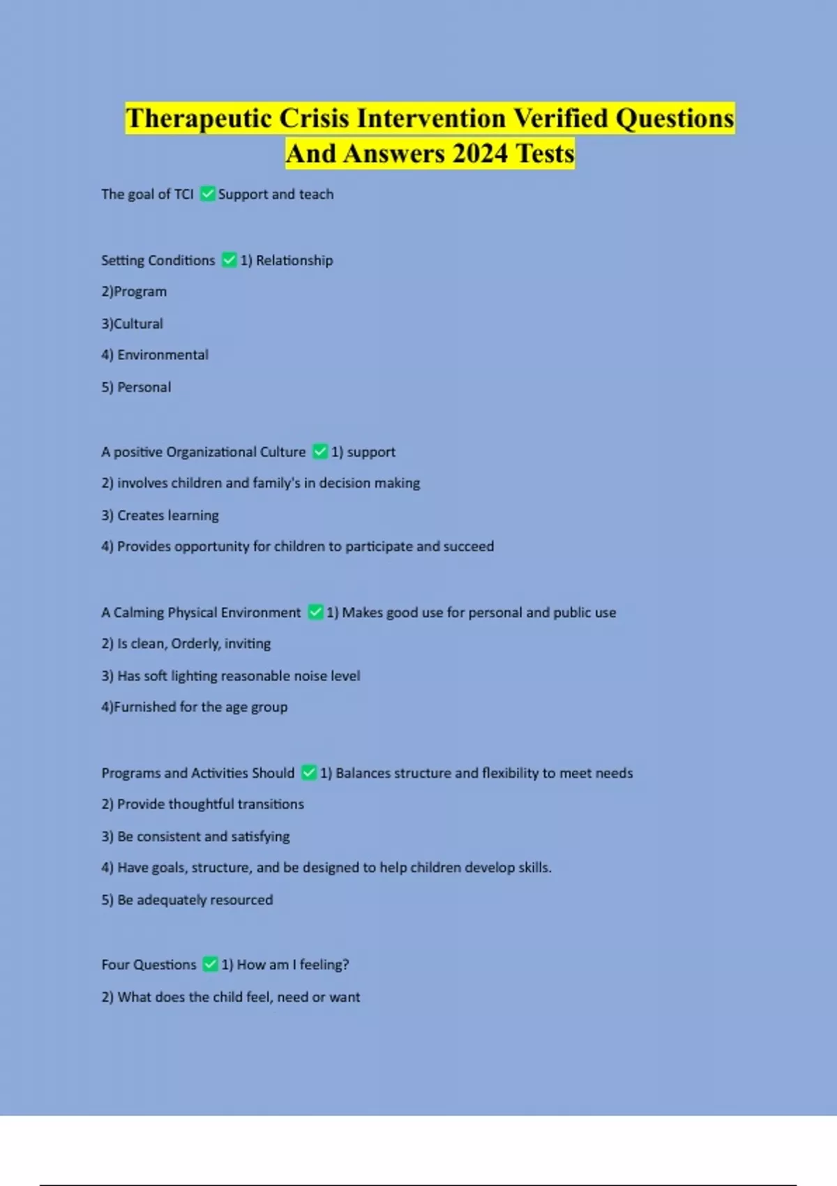 Therapeutic Crisis Intervention Verified Questions And Answers 2024 Tests Therapeutic Crisis Intervention Verified Questions And Answers 2024 Tests