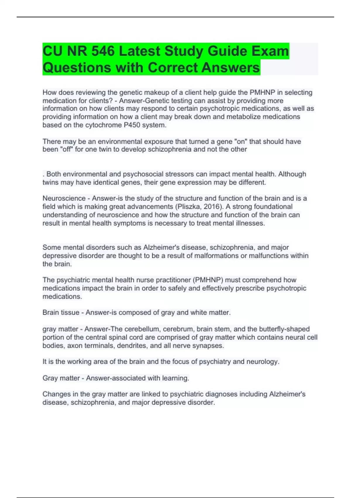 CU NR 546 Latest Study Guide Exam Questions with Correct Answers