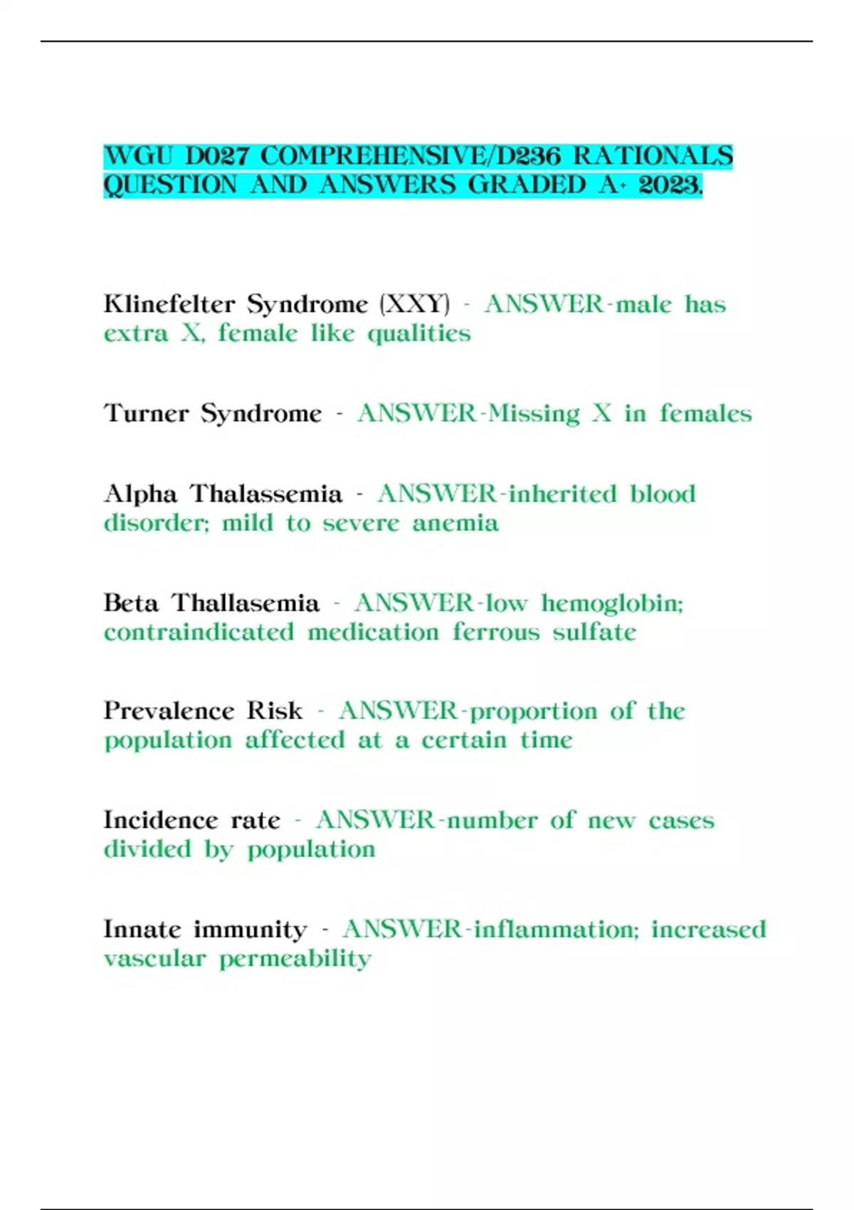 - WGU D027 COMPREHENSIVE/D236 RATIONALS QUESTION AND