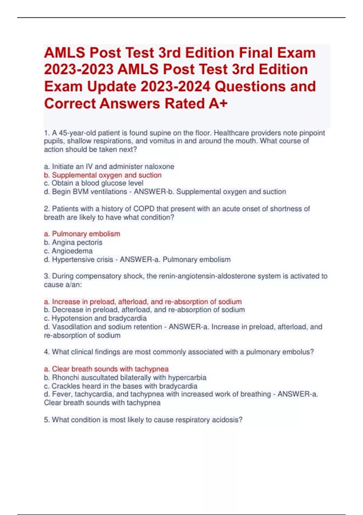 AMLS Post Test 3rd Edition Final Exam AMLS Post Test 3rd Edition Exam Update Questions and Correct Answers Rated A+