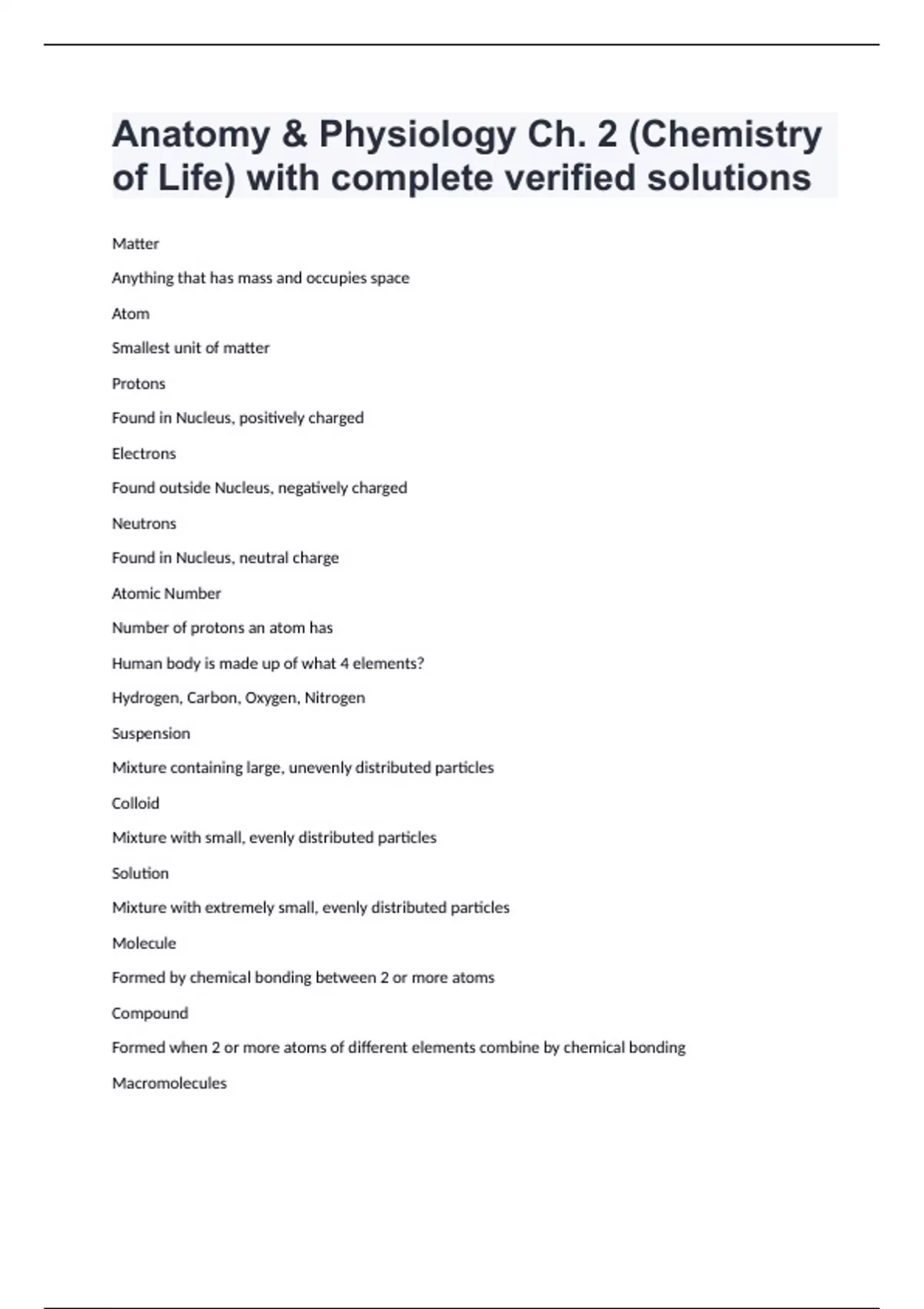 Anatomy & Physiology Ch. 2 (Chemistry of Life) with complete verified solutions.