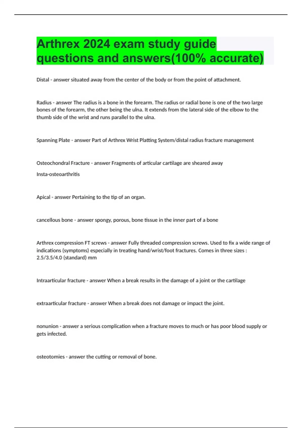 Arthrex 2024 exam study guide questions and answers(100% accurate)