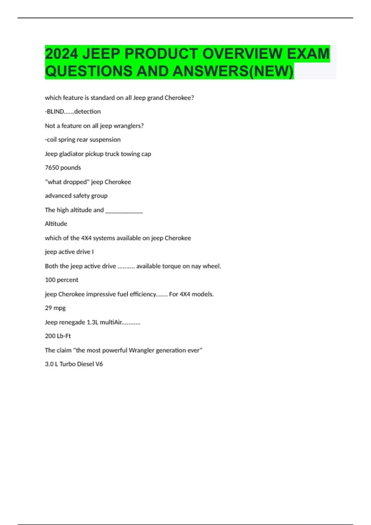 2024 JEEP PRODUCT OVERVIEW EXAM QUESTIONS AND ANSWERS(NEW)