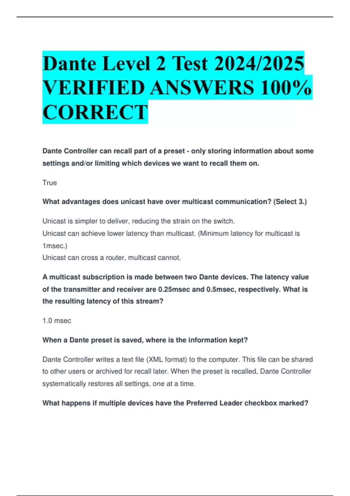 Dante Level 2 Test 2024/2025 VERIFIED ANSWERS 100% CORRECT