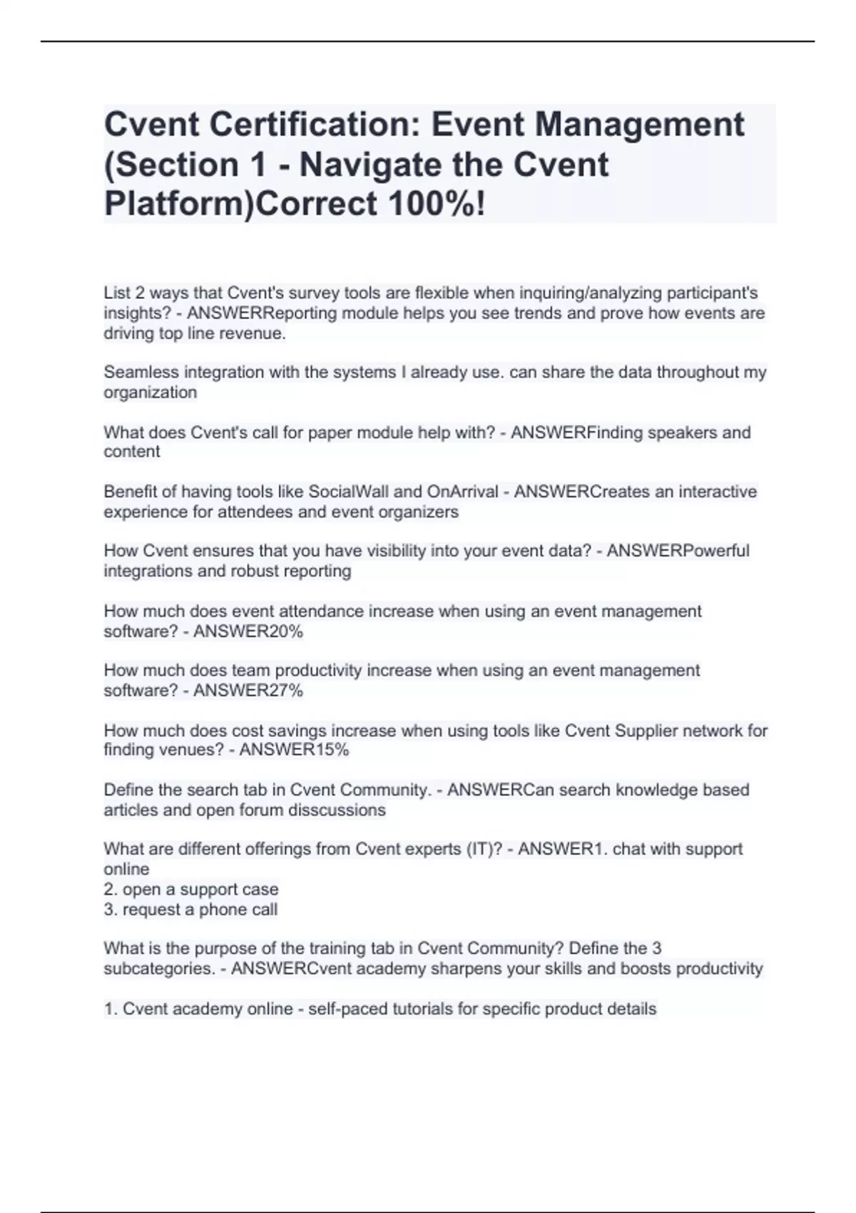 Cvent Certification: Event Management (Section 1 - Navigate the Cvent Platform)Correct 100%!