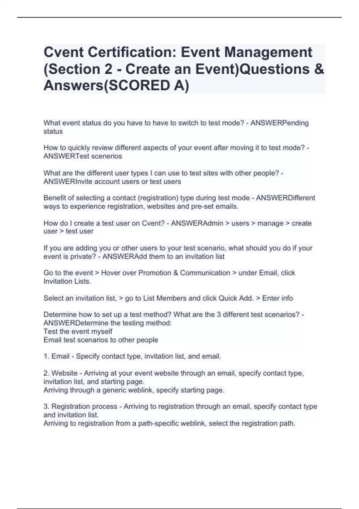 Cvent Certification: Event Management (Section 2 - Create an Event)Questions & Answers(SCORED A)