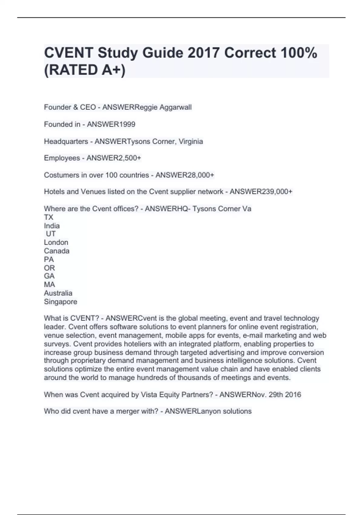 CVENT Study Guide 2017 Correct 100%(RATED A+)