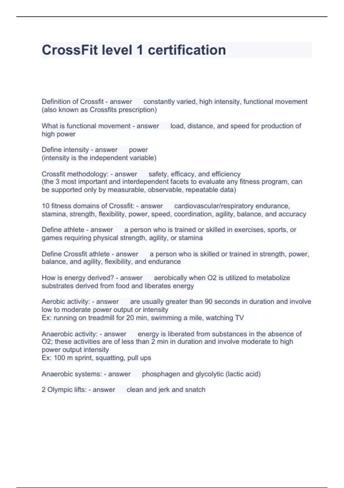 CrossFit level 1 certification Questions and Answers 2024 Solved