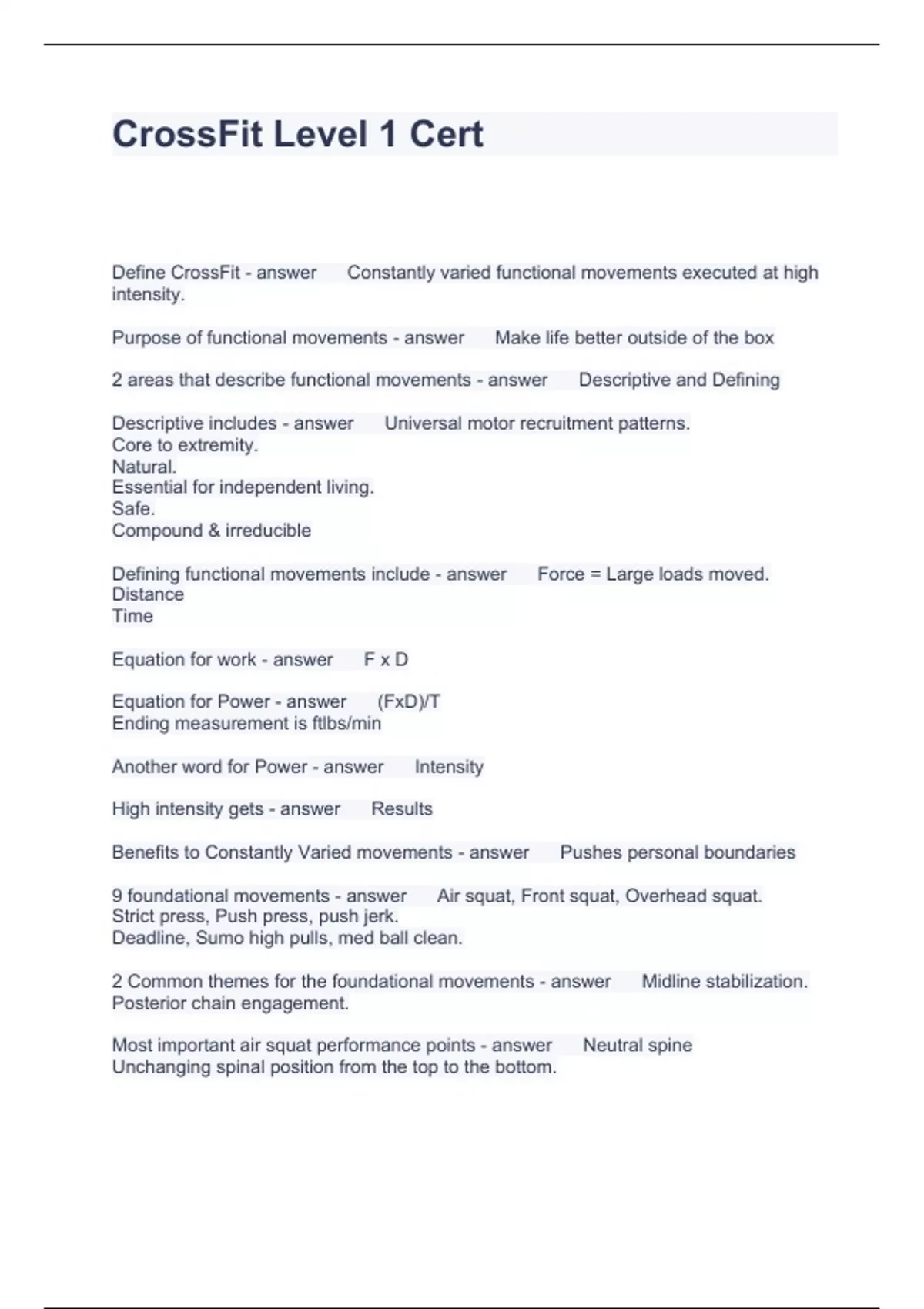 CrossFit Level 1 Cer1 Questions and Answers Latest UPDATED