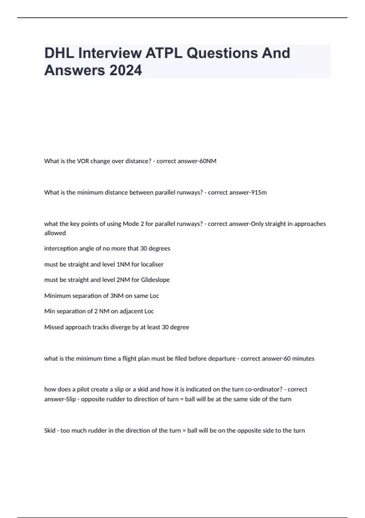 dhl interview atpl questions and answers 2024