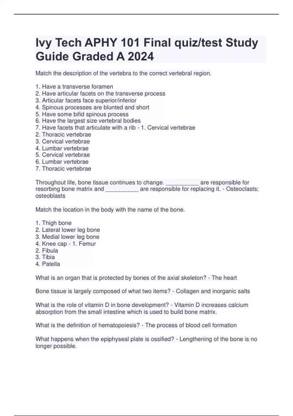 Ivy Tech APHY 101 Final quiz/test Study Guide Graded A 2024