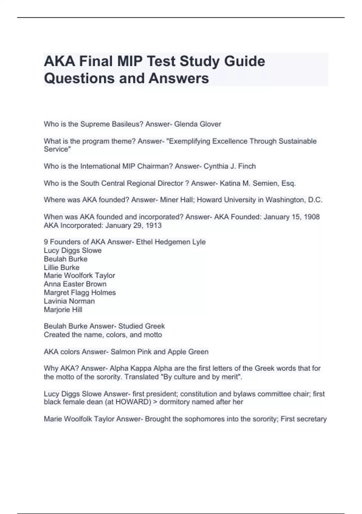 AKA Final MIP Test Study Guide Questions and Answers