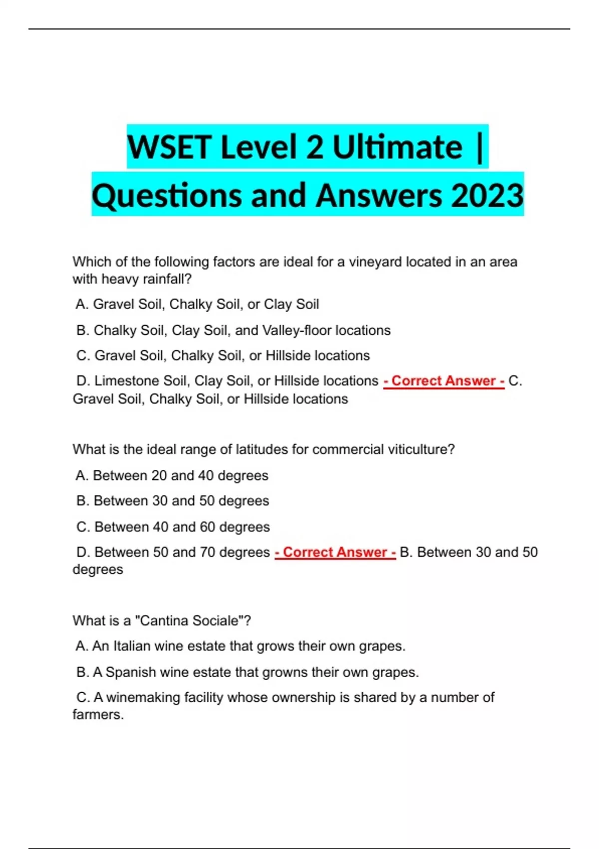WSET Level 2 Ultimate | Questions and Answers 2023 WSET Level 2 Ultimate | Questions and Answers 2023 WSET Level 2 Ultimate | Questions and Answers 2023